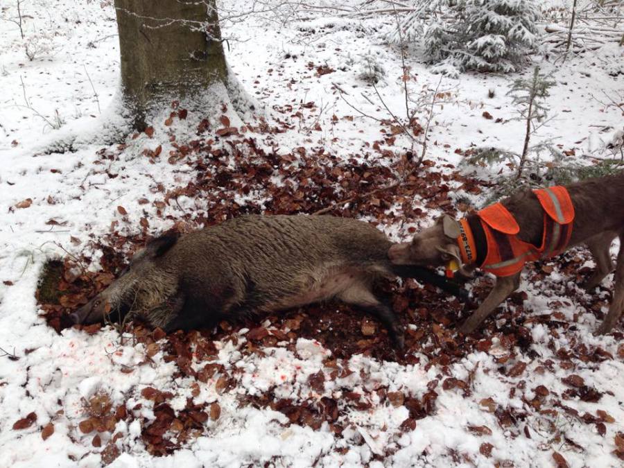 Due to the fact that there is no Slovakian roughhaired pointer club associated to the JGHV in germany at the moment, breeding takes place directly via the VDH and by that via the FCI. Besides the criteria which has to be fulfilled both by the breeding dog (health tests, HD-rays, genetic fingerprint, 2 conformation scores with at least “very good”, character test at a breed approval event) and as well by the breeder (advanced training courses in kynology, dog breeding, breeding practics), for us the hunting use has priority. Because of that our dogs have to prove themselves not only at hunting tests, but also in hunters daily life. Our (breeding)dogs fulfill all breeding criteria required by the JGHV.